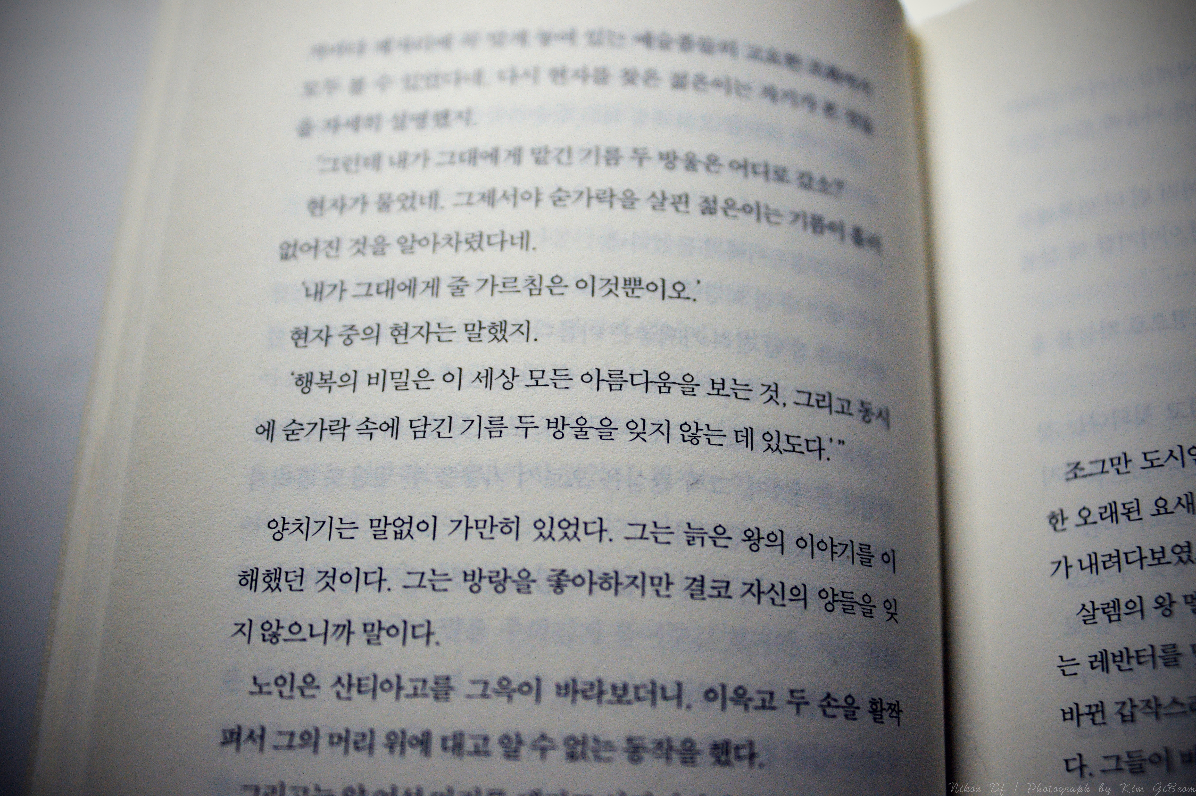 행복의 비밀은 이 세상 모든 아름다움을 보는 것. 그리고 동시에 숟가락에 담긴 기름 두 방울을 잊지 않는데 있다.