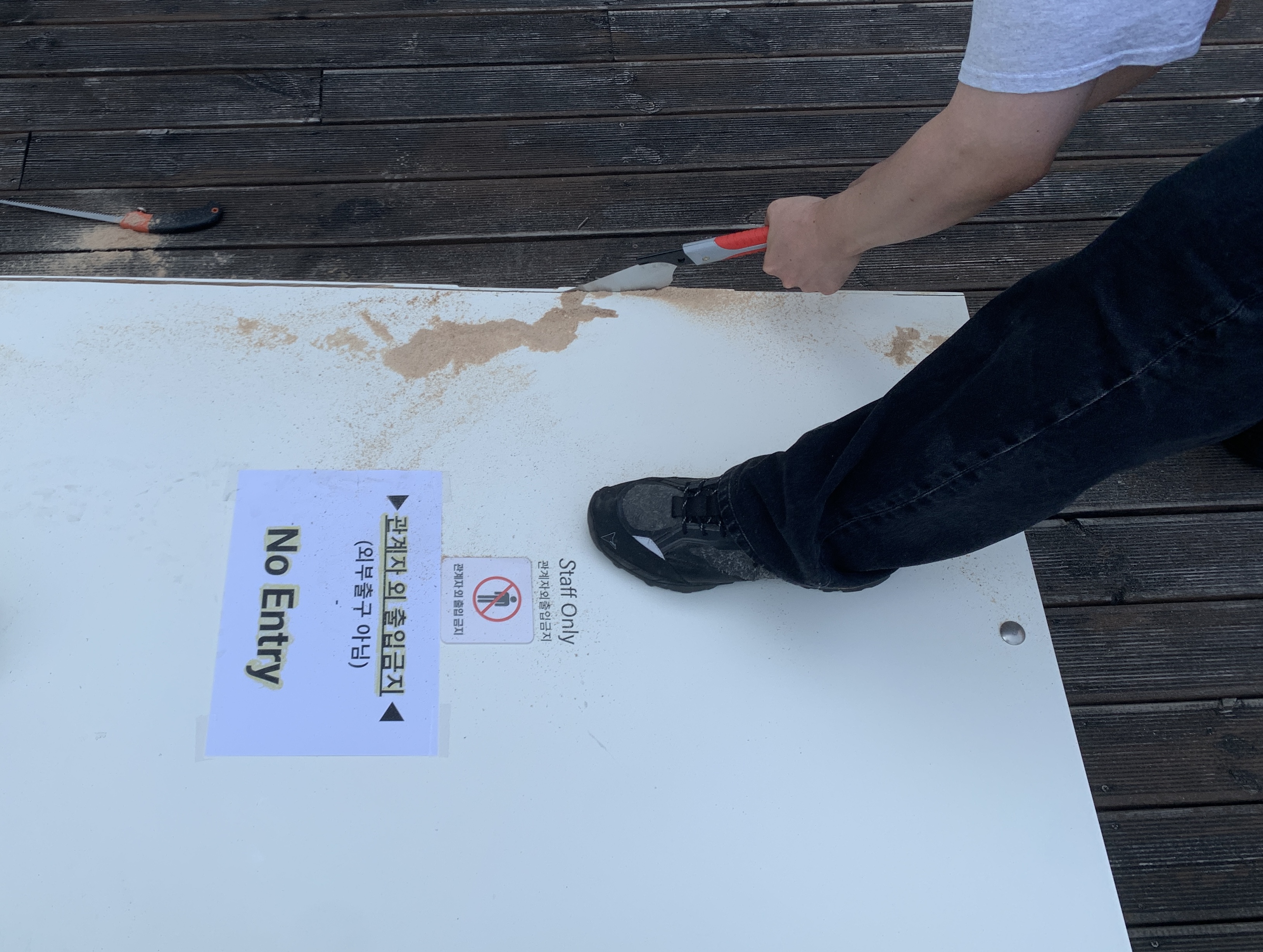 매장에서 톱질