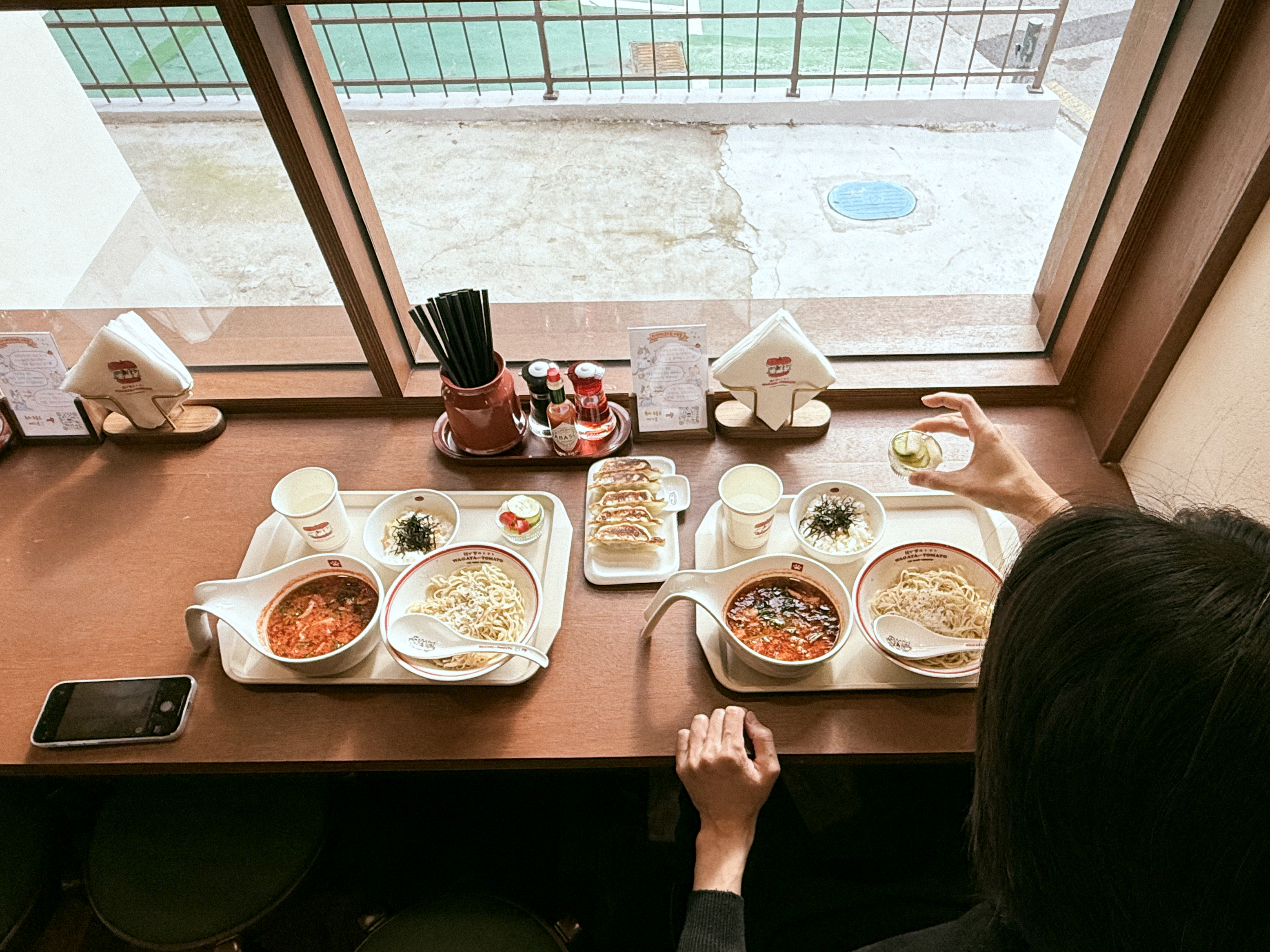 먹는 방법은 저 면을 왼쪽 수프에 담가 먹는 것이다.